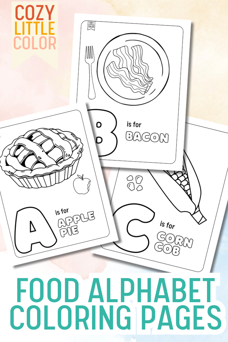 From “A is for Apple Pie” to “Z is for Zucchini”, I hope you enjoy these food themed coloring pages!