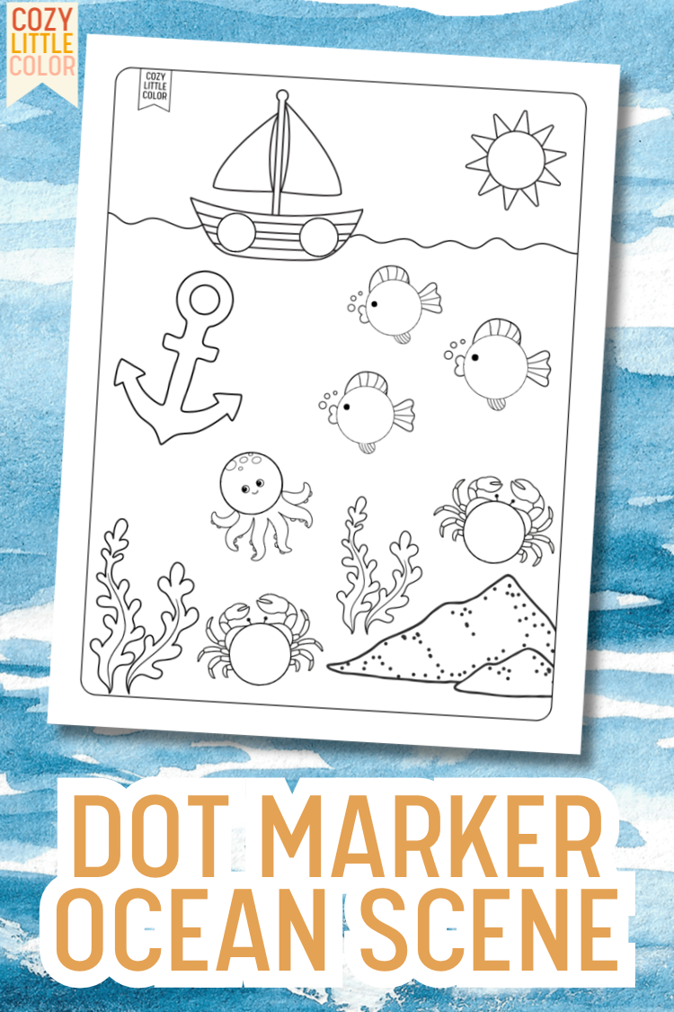 Perfect for preschoolers and toddlers, this ocean themed coloring page includes large circle areas to color in with dot markers!